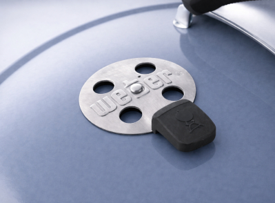 La tapa incorpora una válvula de ventilación de aluminio que permite regular de forma precisa el flujo de aire, facilitando el control de la temperatura durante la cocción y optimizando el rendimiento de la barbacoa.