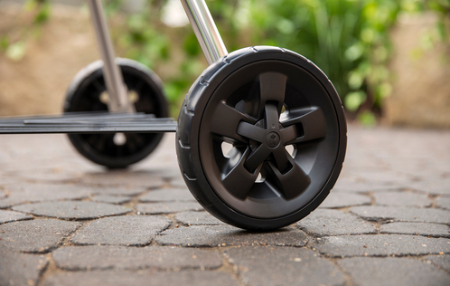 Se desplaza con facilidad gracias a sus dos ruedas resistentes, diseñadas para soportar todo tipo de climas y superficies.