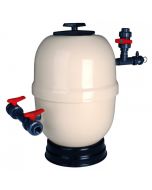 Disponible en versiones in-line (para conexión directa a la tubería con enlaces de 1-1/2") y off-line (para conexión bypass mediante tubo flexible). Capacidad aproximada de 3,5 kg de tabletas. Cierre con doble sistema de seguridad en la tapa. Válvulas de regulación de sencilla utilización. Para piscinas de hasta 60 m3 con cloro y para piscinas de hasta 30 m3 con bromo. Altura: 405 mm