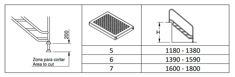 Disponible en 5, 6 y 7 peldaños para adaptarse a diferentes profundidades.