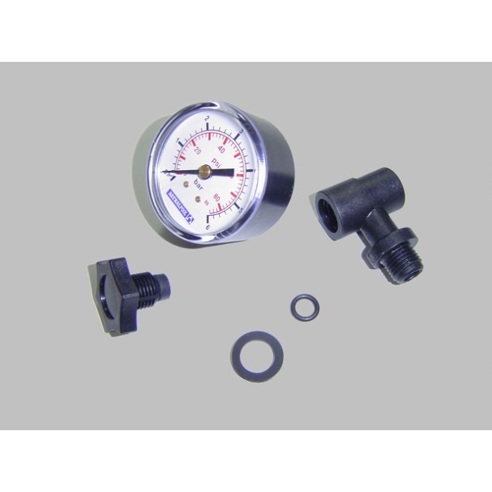 Manómetro completo con accesorios para la conexión a la depuradora, incluida la junta. Sustituye el manómetro averiado para volver a disponer de datos fiables sobre la presión interna del filtro, que te permitirán determinar si es necesario efectuar un lavado y enjuague de la arena.