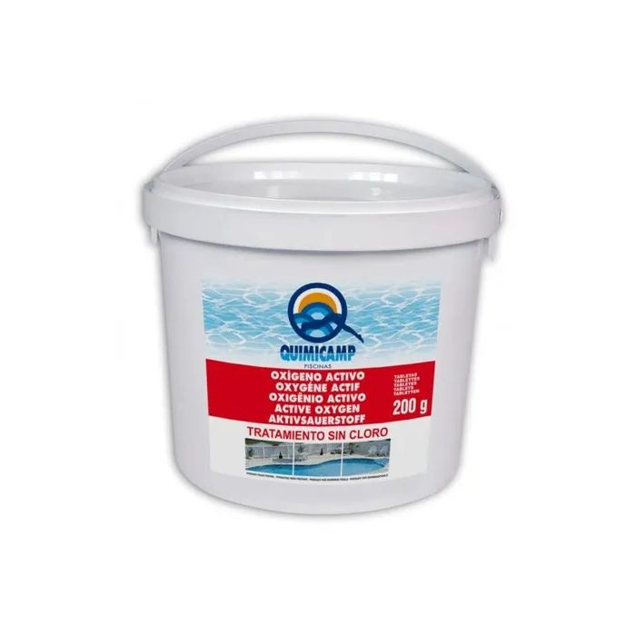 Oxígeno activo de Quimicamp es un producto desinfectante sin cloro en pastillas de 200 g ideal para el tratamiento y desinfección del agua de piscinas. Ofrece una alternativa al uso de productos clorados, siendo eficaz independientemente del nivel de pH del agua.