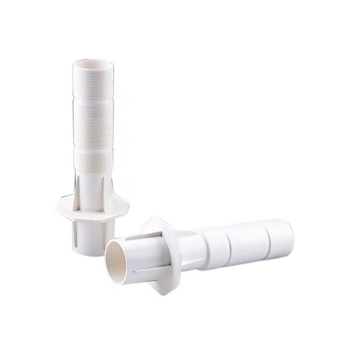 Pasamuros de 300 mm de longitud para boquillas Ø 2” y Multiflow que pueden cortarse a la medida que el usuario precise, según el grosor de la piscina. Fabricados en material ABS. Diseñados con unos orificios en los nervios de la valona que permiten posicionar el pasamuro a la estructura de la piscina, facilitando así su montaje.