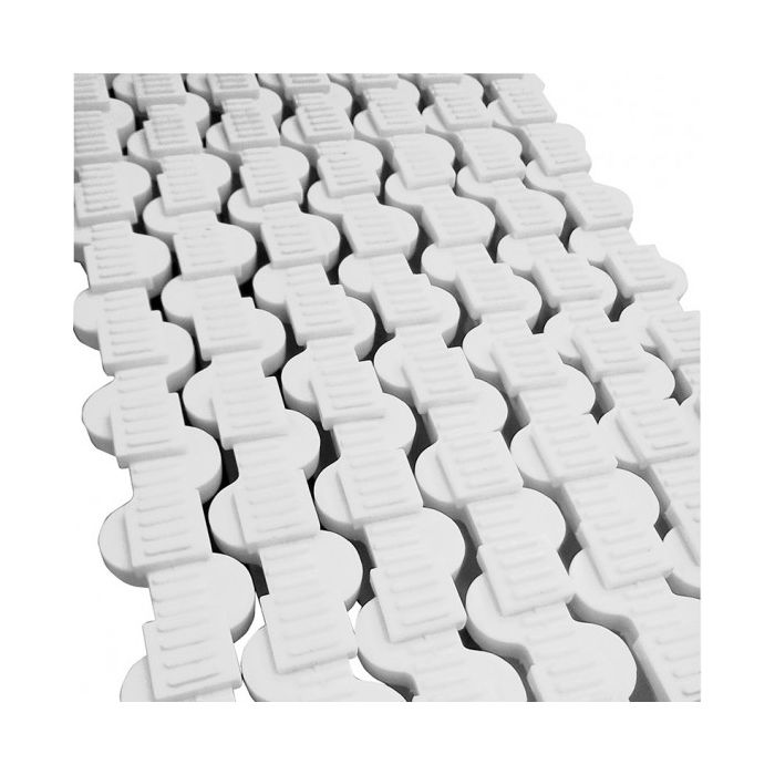 En PP con estabilizantes para la protección contra los rayos UV. Unión por acoplamiento de ajuste entre módulos. Resistencia al deslizamiento Clase 3 (Rd>45) según la UNE-ENV 12633 tal y como se especifica en la sección SU1 del Código Técnico de la Edificación vigente. Necesitarás 48 unidades para completar 1 metro lineal.