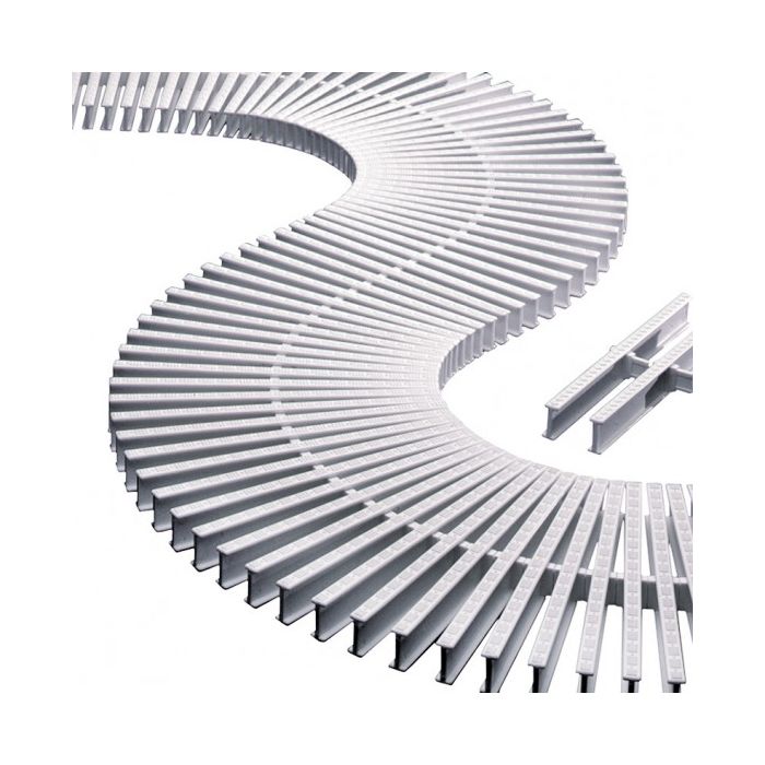 Unión por acoplamiento de ajuste entre módulos (45 unidades por m).