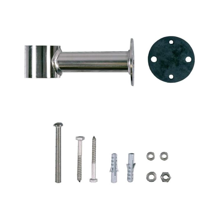 Incluye pieza de soporte en acero inoxidable, junta y tornillería necesaria para su fijación.